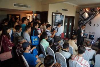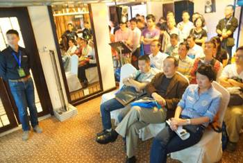 試聽會現場擠滿了熱情的參觀者 AV營業部華南組組長陳超介紹雅馬哈HiFi產品