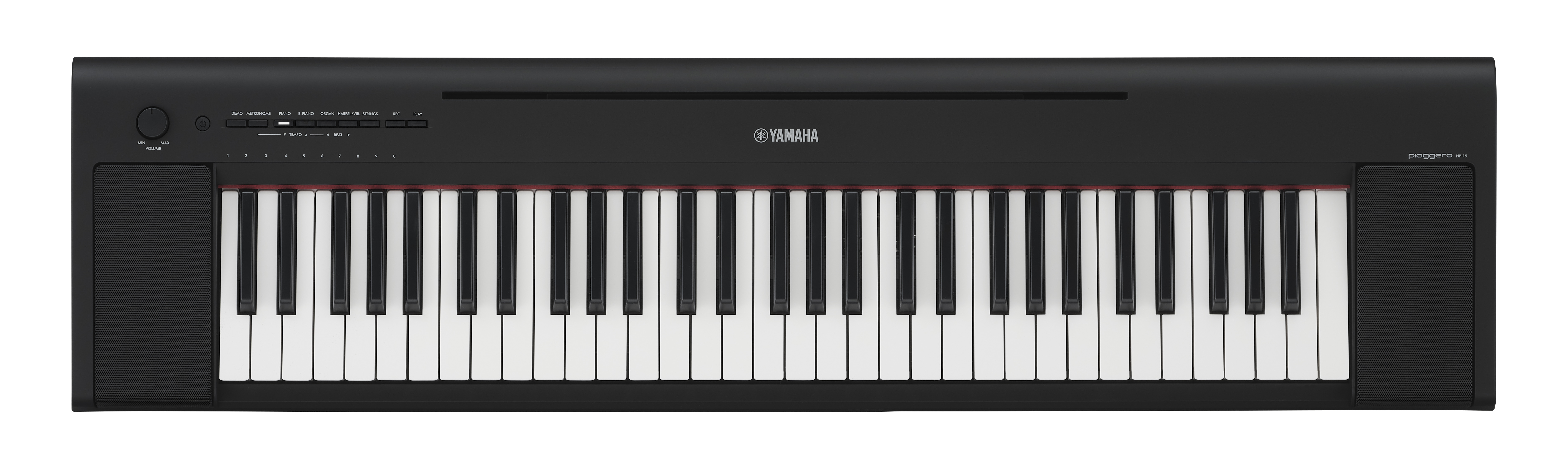 NP-15屬于 "Piaggero "系列,結合了 "Piano(鋼琴) "和 "leggero(輕快的) "一詞,后者是一個音樂術語,意思是 "輕快的、輕巧的"。正如其名,NP-15非常輕,即使對于便攜式鍵盤來說也是如此,因此你可以把它帶到任何地方。在室內、室外,甚至在旅行中,都可以放心地把它帶到你喜歡的地方去練習。