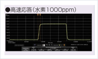 - 在高濃度氫氣下,不會發生線性度下降和輸出飽和。即使超過2000ppm,也能正常輸出而不會飽和